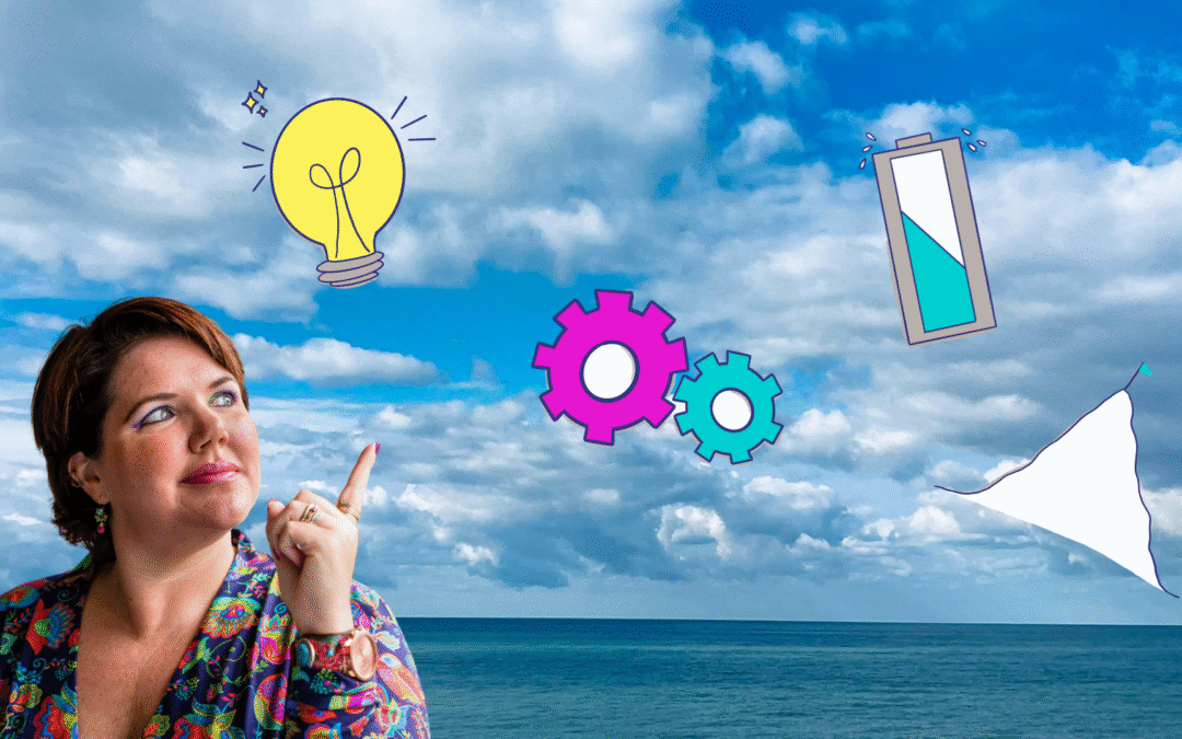 Wanneer iemand zijn verhaal vertelt, gebeurt er namelijk iets in mijn hoofd. Terwijl iemand praat, verschijnen er langzaam beelden. Geen perfecte tekening, geen uitgewerkt ontwerp. Meer losse flarden die zich langzaam beginnen te vormen. Als iemand vertelt dat zijn energie steeds wegloopt, zie ik bijvoorbeeld een batterij die langzaam leeg raakt. Wanneer iemand zegt dat alles eindelijk beter op elkaar aansluit, verschijnen er tandwielen die in elkaar grijpen. En als iemand vertelt dat hij onderweg obstakels tegenkomt maar toch zijn doel wil bereiken, zie ik een berg voor me, met bovenop een vlag.